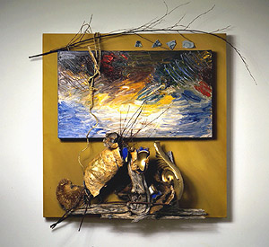 Oil on canvas with recycled and organic materials (Click on image for large view) |