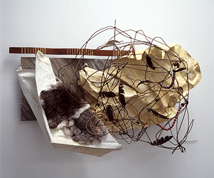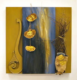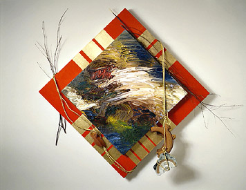 Water Fall 1998 Wall Sculpture, oil on canvas with plant materials 39"x39"x8" $2800 |