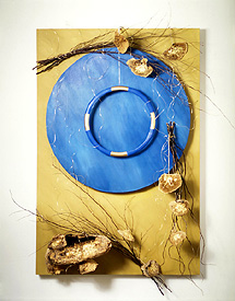 | Ancestral Vessel 2000 Wall Sculpture, oil on canvas with plant material 39"x39"x9" $3000 |